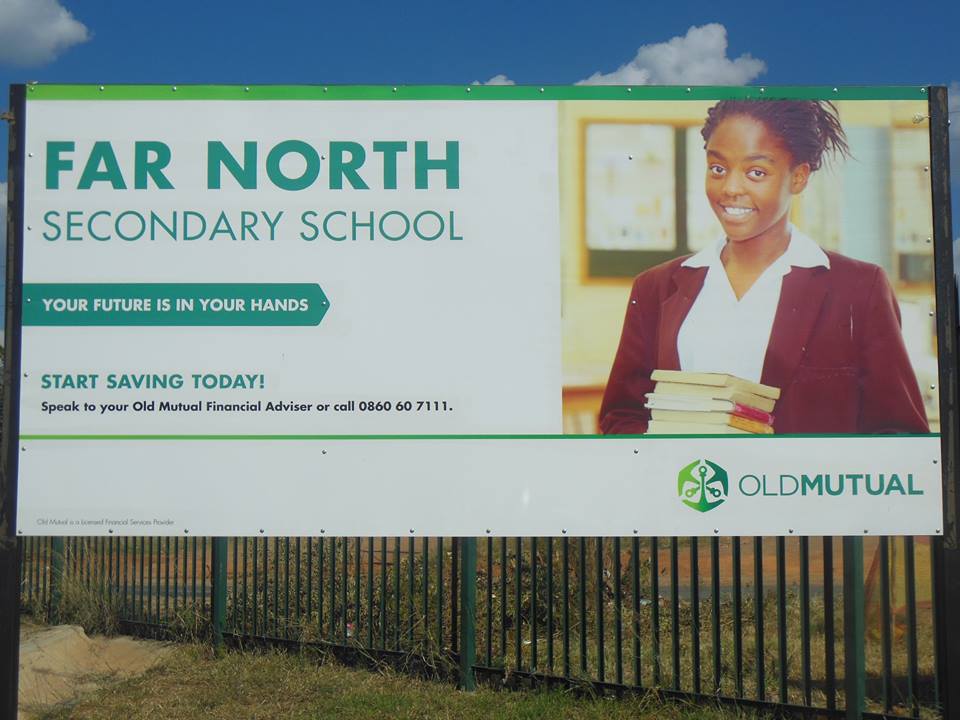 Far North Secondary School serves the Zandspruit Informal Settlement community though it is in Cosmo City extension 9. The school is located in Ward 100 since its establishment in 2014.