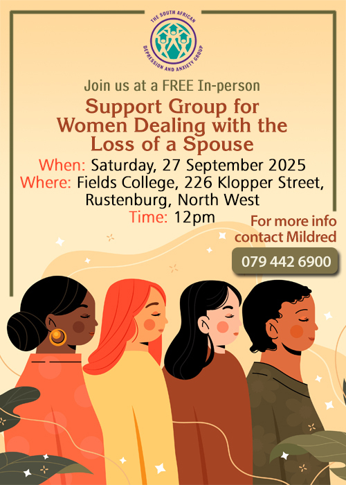 Join SADAG for the launch of a New In-Person Support Group on Saturday, 27 September 2025, at Fields College, 226 Klopper Street, Rustenburg, North West, starting at 12pm.