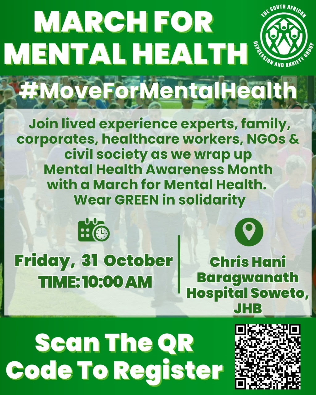 Join us as we wrap up Mental Health Awareness Month with the March for Mental Health at Chris Hani Baragwanath Hospital in Soweto.
