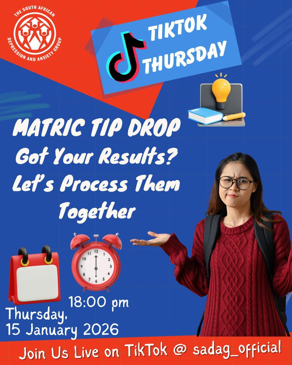 Whether things went as you hoped or not, we’re here to remind you that there are always options, support, and a way forward. Catch us Live on our TikTok page @SADAG_Official